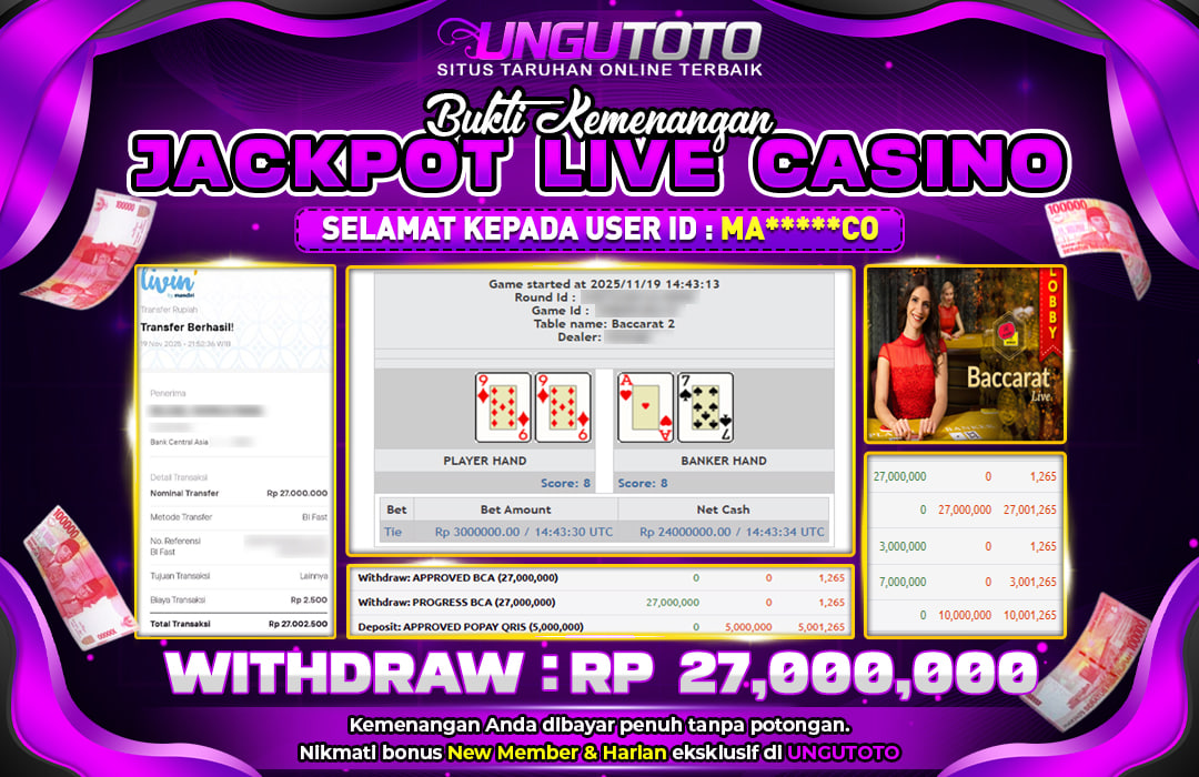Selamat Kepada Member UNGUTOTO MA⭑⭑�***��⭑C0 Telah Jackpot Di BACCARAT