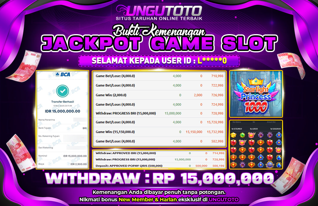 Bergabunglah dengan UNGUTOTO hanya dengan deposit minimal 5.000 rupiah. Kami menyediakan berbagai metode pembayaran seperti transfer bank, e-wallet, dan QRIS, sehingga Anda bisa melakukan transaksi dengan mudah. Proses penarikan juga sangat cepat, dengan minimal withdraw hanya 50.000 rupiah, tanpa biaya tambahan.