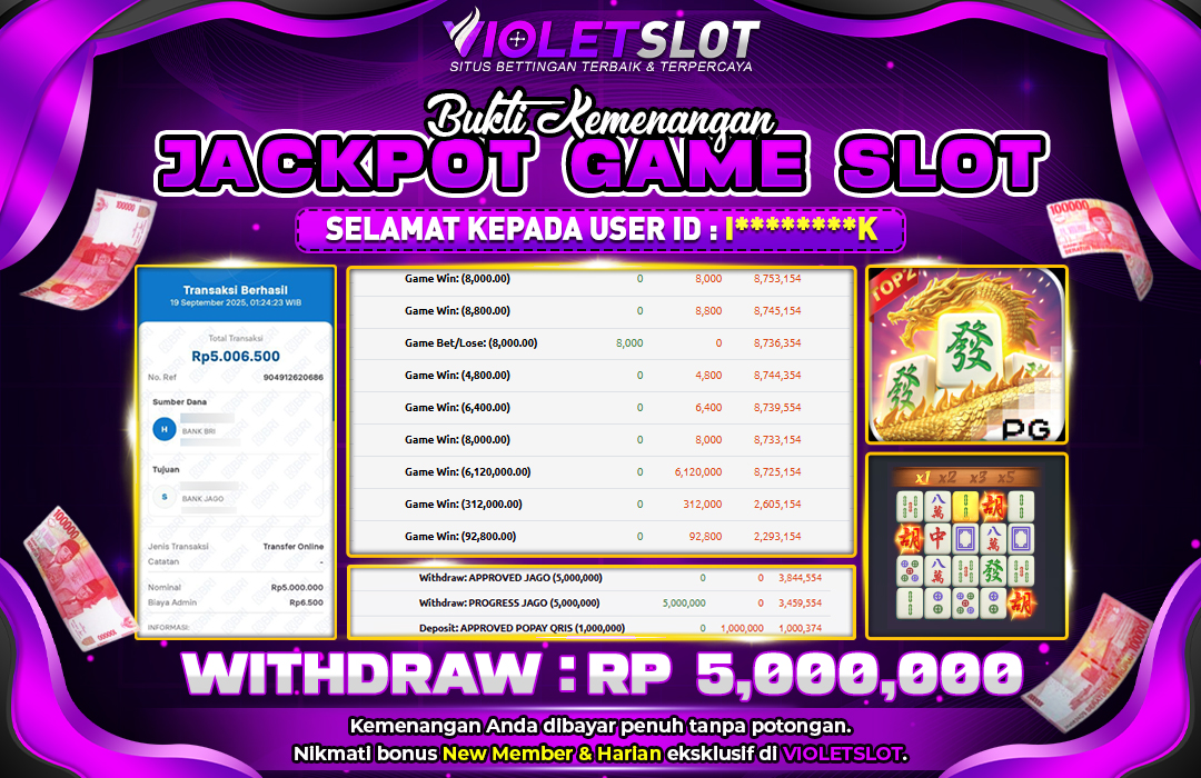 Selamat Kepada Member UNGUTOTO I********K Telah Jackpot Di MAHJONG WAYS 2