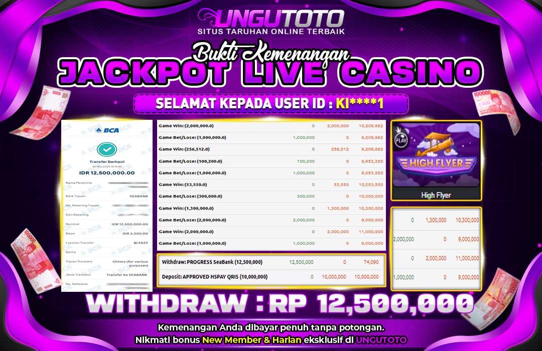 Selamat Kepada Member UNGUTOTO KI⭑�***�⭑1 Telah Jackpot Di HIGH FLYER