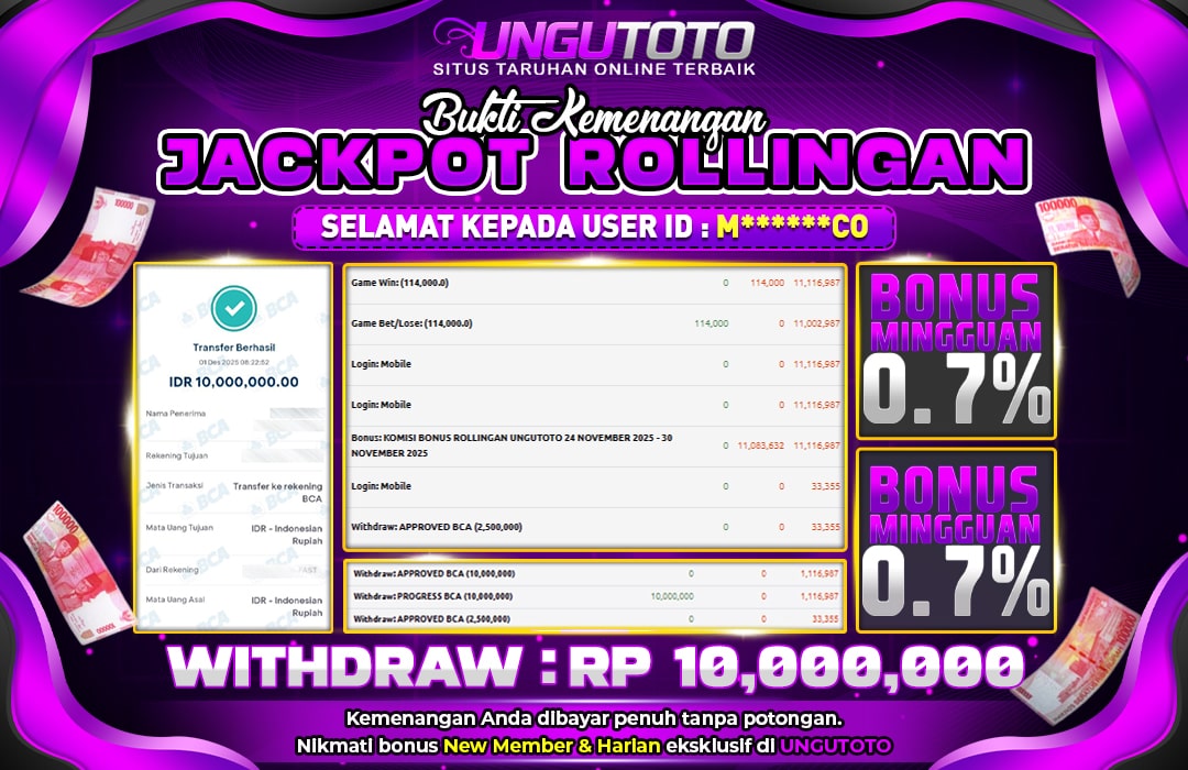 Sudah banyak yang buktiin sendiri—UNGUTOTO konsisten bayar semua kemenangan member, berapapun nominalnya. Transparan, aman, dan dijamin tuntas. 💯🔒