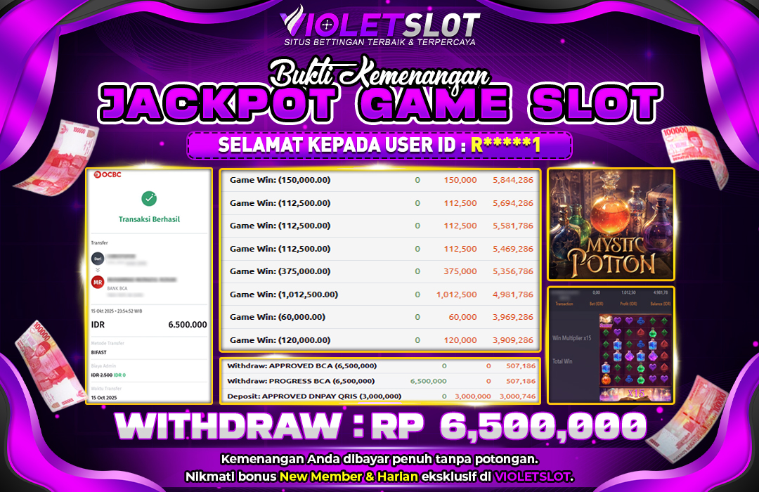 Selamat Kepada Member UNGUTOTO R⭑⭑�***��⭑1 Telah Jackpot Di PG SOFT | MYSTIC POTION