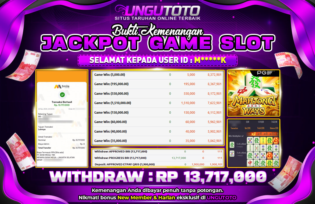 Selamat Kepada Member UNGUTOTO J*******A Telah Jackpot Di MAHJONG WAYS