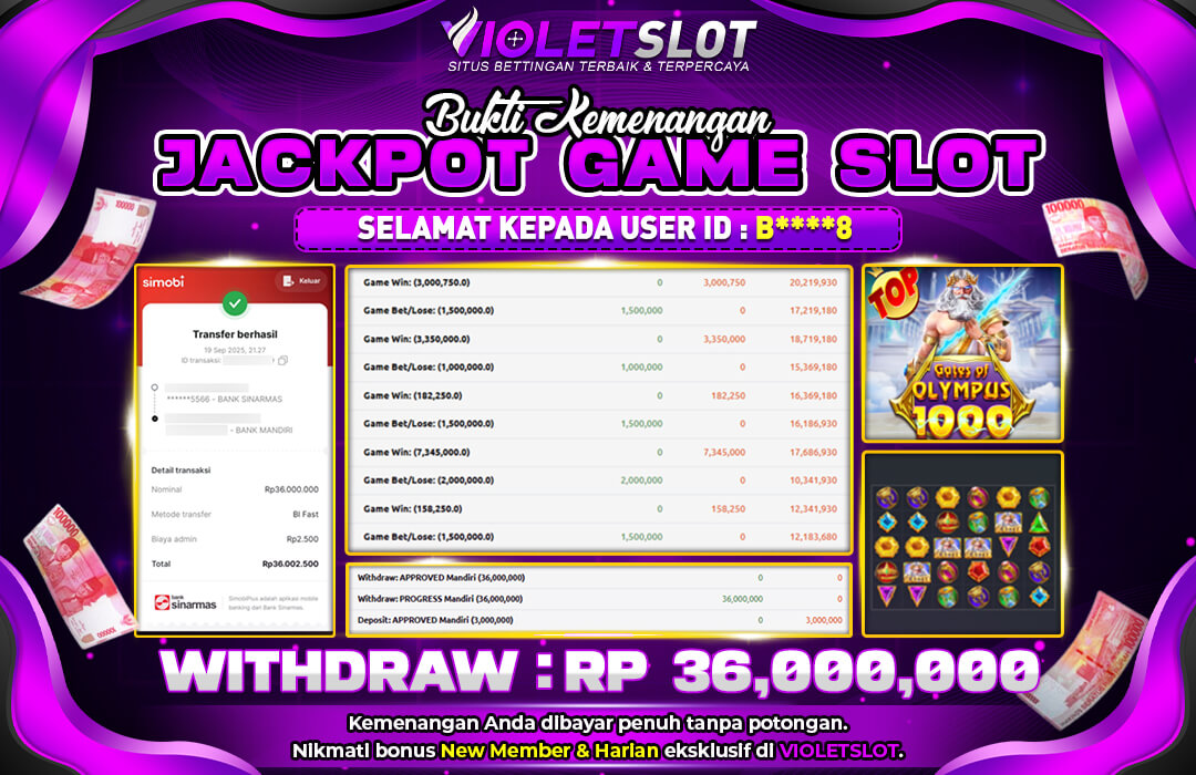 Selamat Kepada Member UNGUTOTO B****8 Telah Jackpot Di GATES OF OLYMPUS 1000