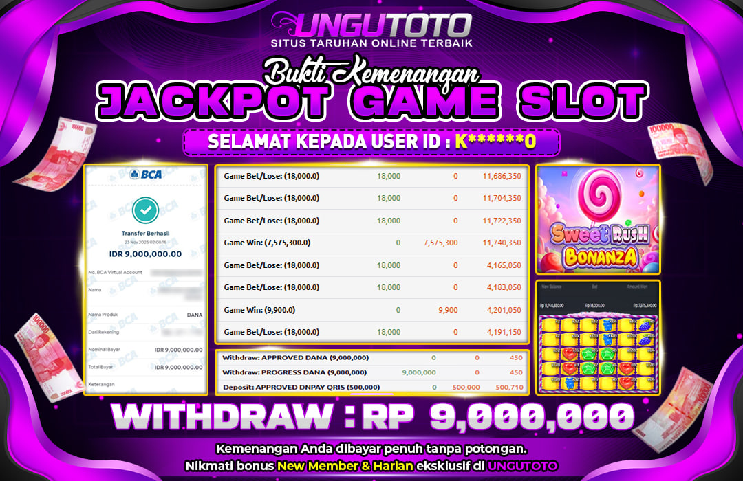 Ya cuma di UNGUTOTO, tempat paling aman dan terpercaya buat para pecinta SWEET BONANZA 1000. Mulai dari layanan responsif, sistem yang fair, sampai pencairan yang tuntas tanpa drama.