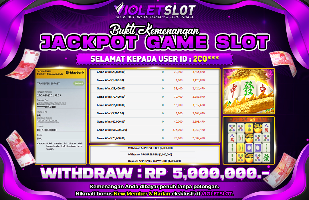 Selamat Kepada Member UNGUTOTO B**********9 Telah Jackpot Di MAHJONG WAYS