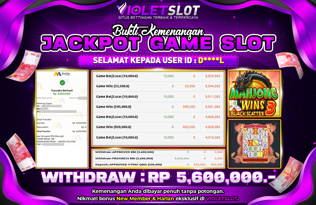 Selamat Kepada Member UNGUTOTO D⭑⭑�***�⭑⭑L Telah Jackpot Di PRAGMATIC PLAY - MAHJONG WINS 3 BLACK SCATTER