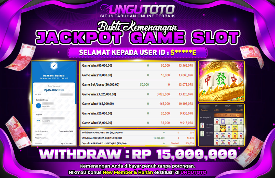 Bergabunglah dengan UNGUTOTO hanya dengan deposit minimal 5.000 rupiah. Kami menyediakan berbagai metode pembayaran seperti transfer bank, e-wallet, dan QRIS, sehingga Anda bisa melakukan transaksi dengan mudah. Proses penarikan juga sangat cepat, dengan minimal withdraw hanya 50.000 rupiah, tanpa biaya tambahan.
