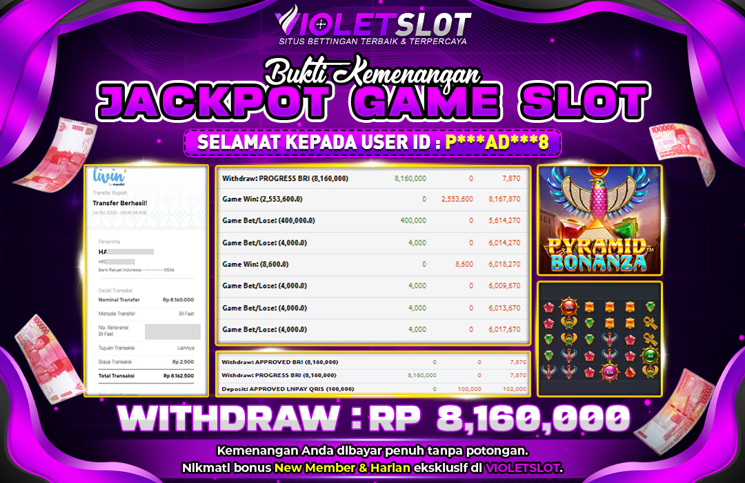 Selamat Kepada Member UNGUTOTO P********8 Telah Jackpot Di GAME SLOT PYRAMID BONANZA
