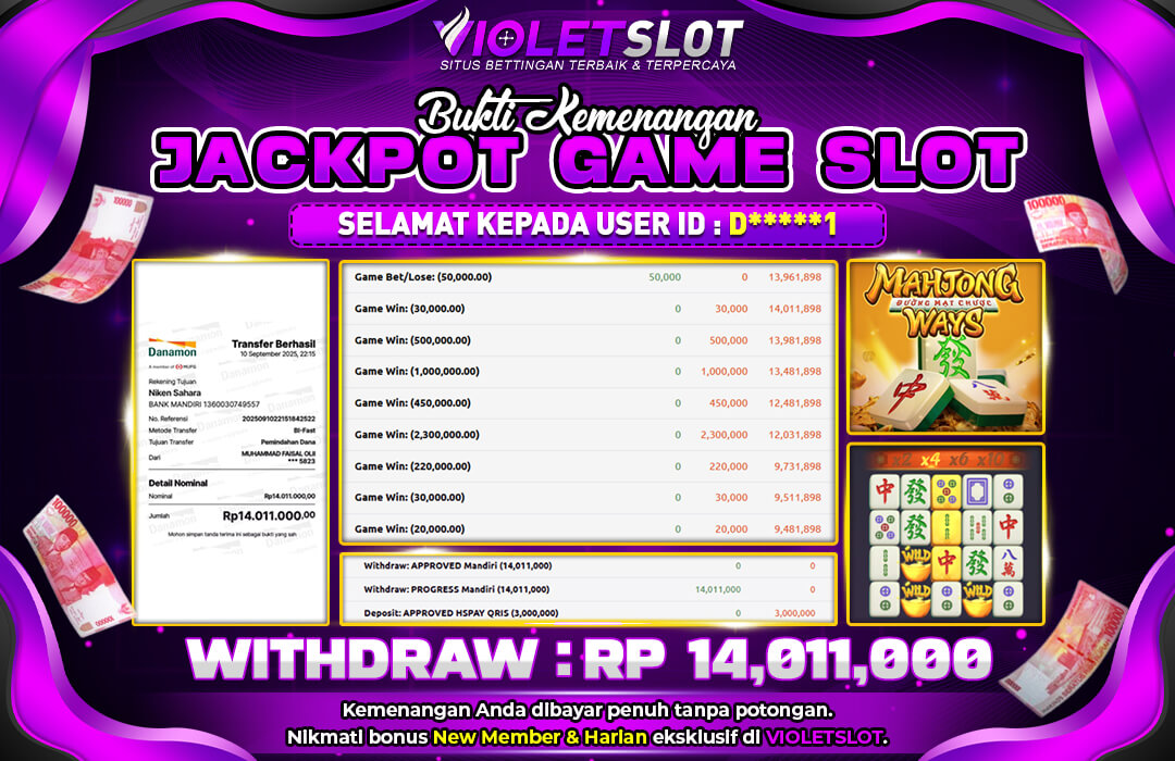 Selamat Kepada Member UNGUTOTO D****1 Telah Jackpot Di MAHJONG WAYS