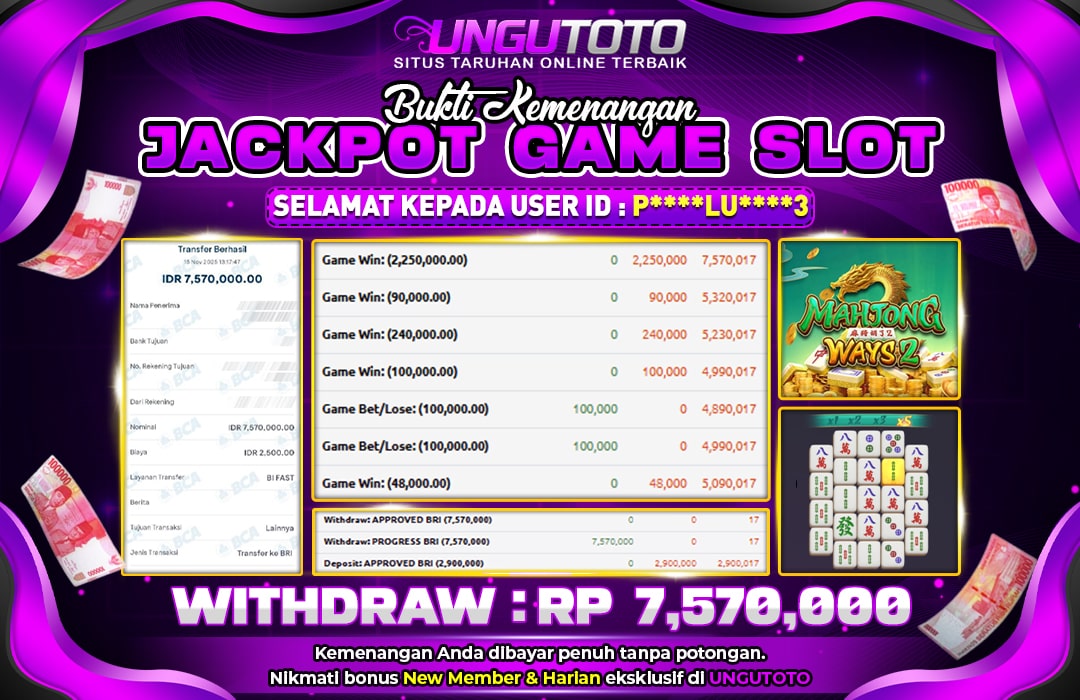 Selamat Kepada Member UNGUTOTO L*******I Telah Jackpot Di MAHJONG WAYS