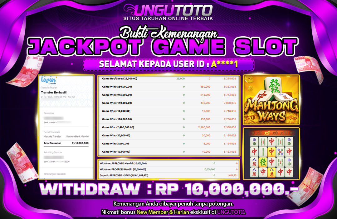 Ya cuma di UNGUTOTO, tempat paling aman dan terpercaya buat para pecinta MAHJONG WINS 3. Mulai dari layanan responsif, sistem yang fair, sampai pencairan yang tuntas tanpa drama.