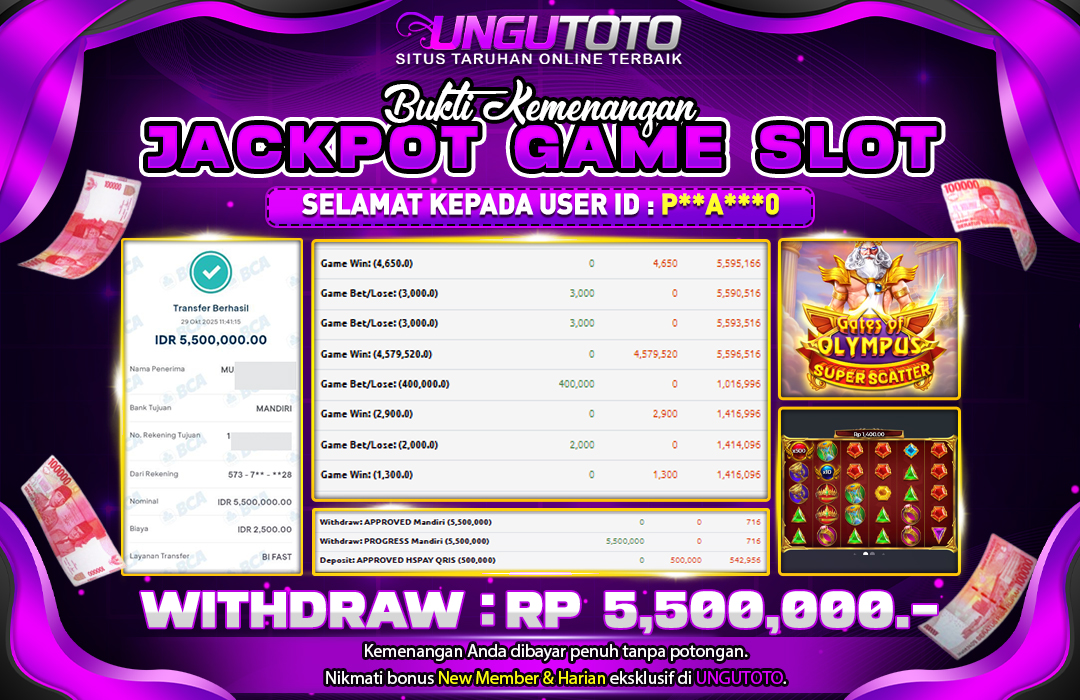 Bergabunglah dengan UNGUTOTO hanya dengan deposit minimal 5.000 rupiah. Kami menyediakan berbagai metode pembayaran seperti transfer bank, e-wallet, dan QRIS, sehingga Anda bisa melakukan transaksi dengan mudah. Proses penarikan juga sangat cepat, dengan minimal withdraw hanya 50.000 rupiah, tanpa biaya tambahan.