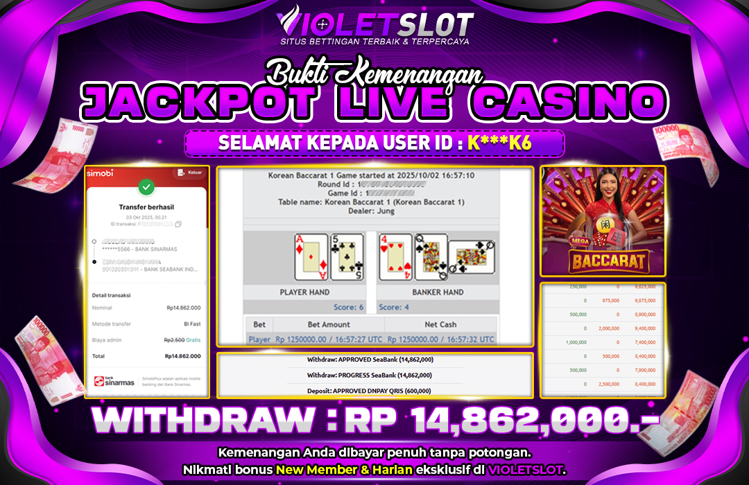 Selamat Kepada Member UNGUTOTO K*****6 Telah Jackpot Di LIVE PP BACARAT