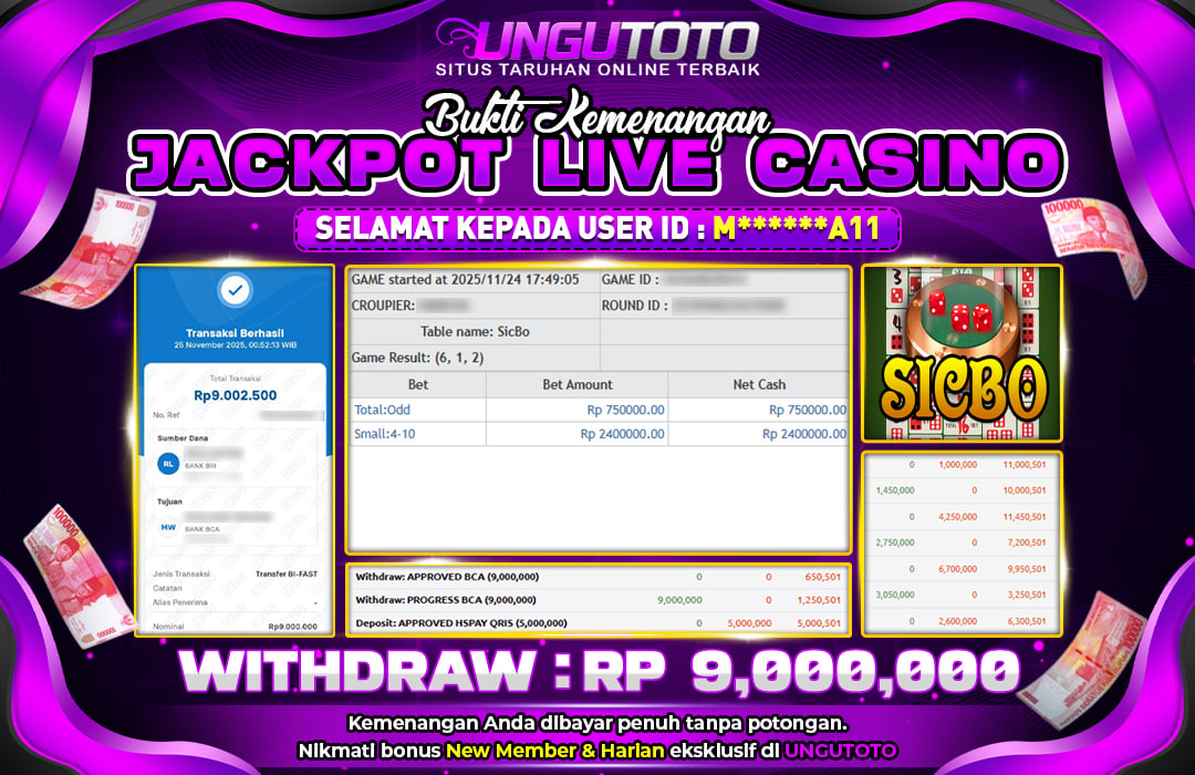 Selamat Kepada Member UNGUTOTO M⭑⭑⭑***⭑⭑A11 Telah Jackpot Di SICBO
