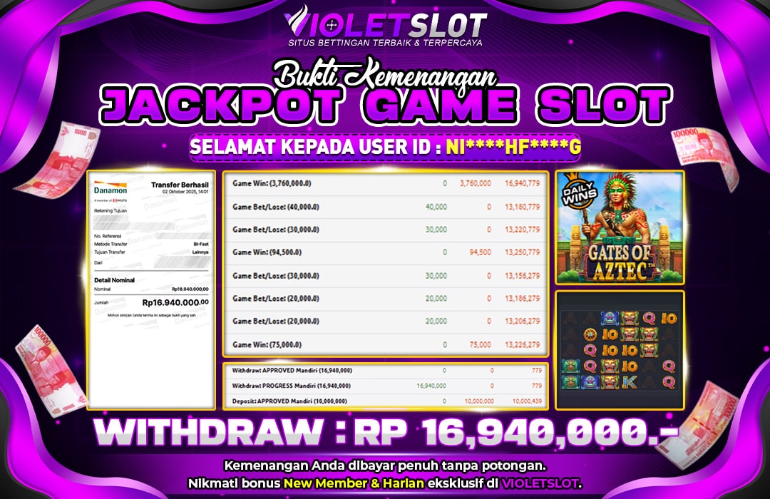 Selamat Kepada Member UNGUTOTO NI**********6 Telah Jackpot Di GATES OF ASTEC
