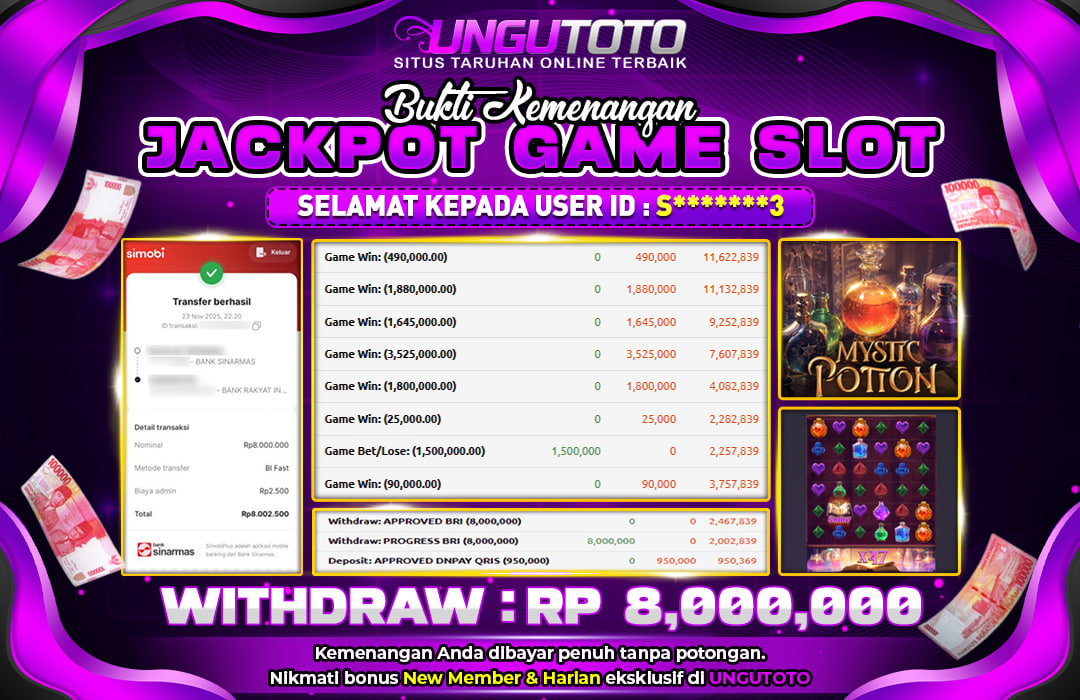 Bergabunglah dengan UNGUTOTO hanya dengan deposit minimal 5.000 rupiah. Kami menyediakan berbagai metode pembayaran seperti transfer bank, e-wallet, dan QRIS, sehingga Anda bisa melakukan transaksi dengan mudah. Proses penarikan juga sangat cepat, dengan minimal withdraw hanya 50.000 rupiah, tanpa biaya tambahan.