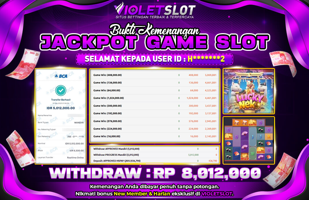 Selamat Kepada Member UNGUTOTO H*****2 Telah Jackpot Di LUCKY NEKO