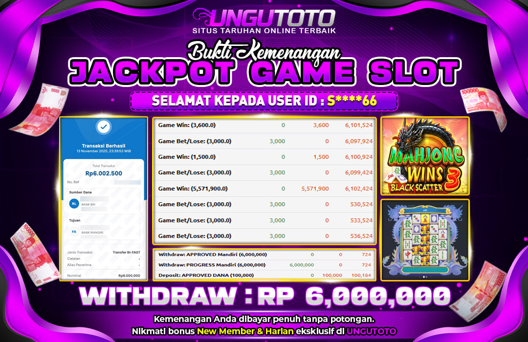Selamat Kepada Member UNGUTOTO G*****2 Telah Jackpot Di MAHJONG WAYS