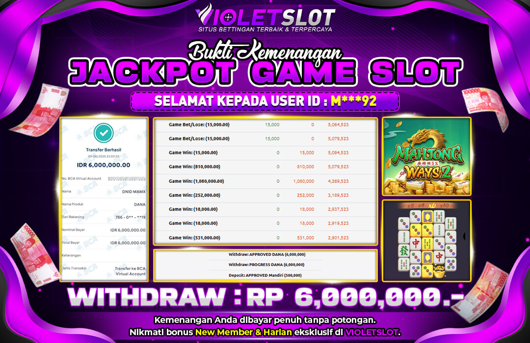 Selamat Kepada Member UNGUTOTO M*****2 Telah Jackpot Di MAHJONG WAYS 2