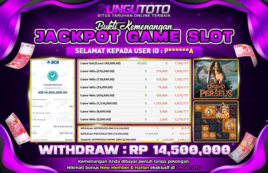 Selamat Kepada Member UNGUTOTO P⭑⭑�***��⭑A Telah Jackpot Di LEGEND OF PERSEUS