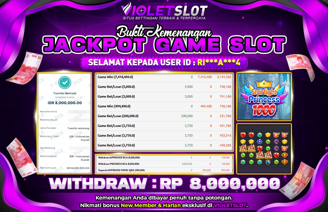 Selamat Kepada Member UNGUTOTO RI*******4 Telah Jackpot Di STARLIGHT PRINCESS 1000