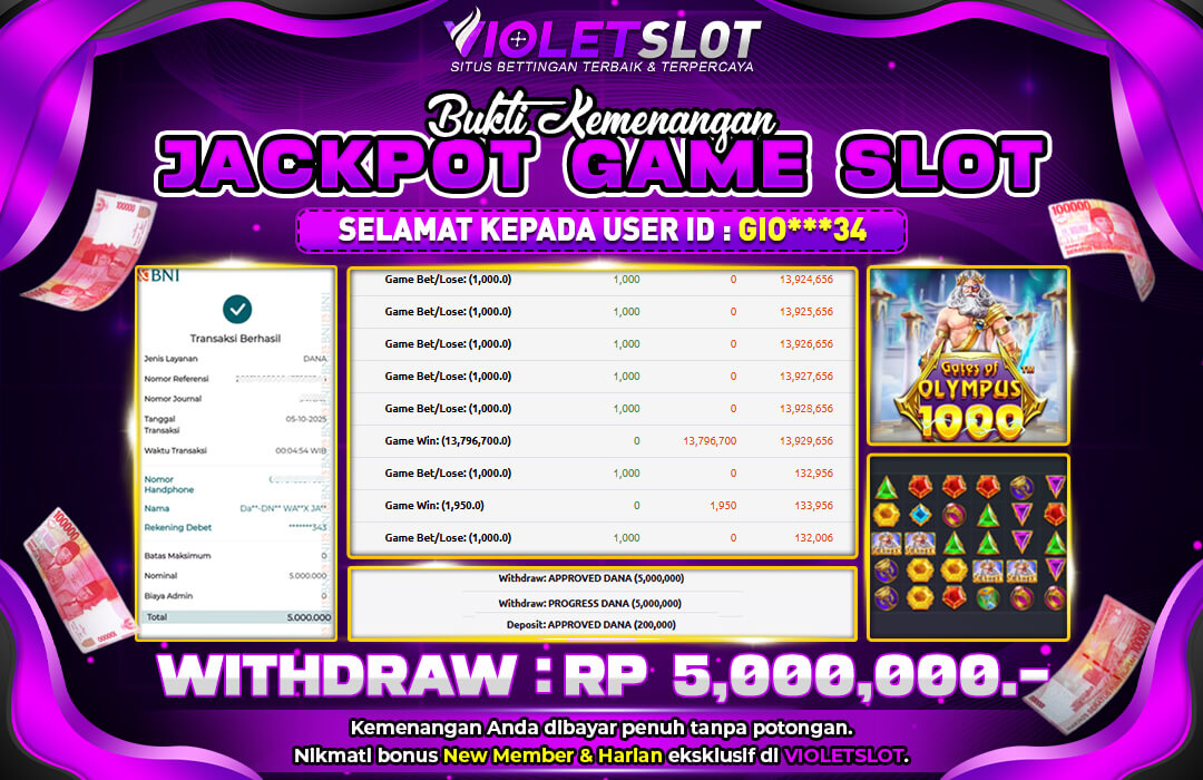 Selamat Kepada Member UNGUTOTO GIO***34 Telah Jackpot Di GATES OF OLYMPUS 1000